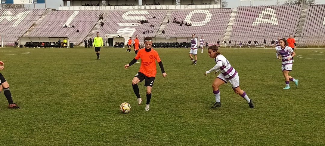 Programata initial pe terenul de iarba din complexul Adrian Stoicov, cu cateva minute inainte partida a fost mutata pe stadionul Dan Paltinisanu. Politehnica a deschis scorul in minutul 8 prin Shaira Pera, pentru ca dupa un sfert de ora scorul sa devina 2-0, odata cu reusita lui Emily Scaramelo. Aceeasi fotbalista a mai inscris o data, dar golul a fost anulat pentru offside. Pana la pauza, formatia din Comlosu Mare a revenit insa pe tabela. Mai intai a redus din diferenta Melisa Sodinca, din pasa Narei da Costa, pentru ca la golul al doilea rolurile sa se inverseze si brazilianca venita in aceasta iarna sa egaleze situatia de pe tabela.