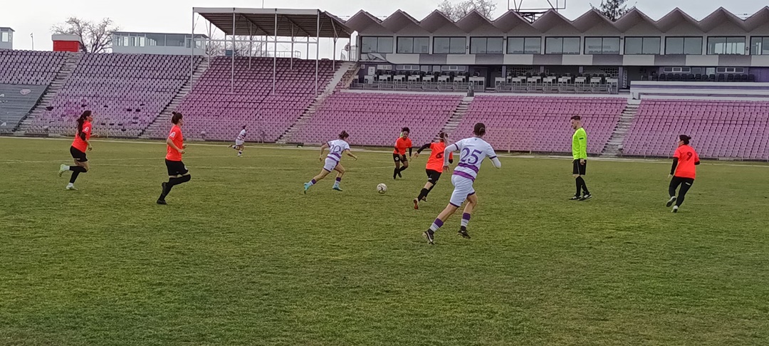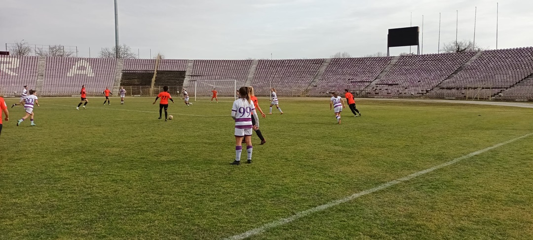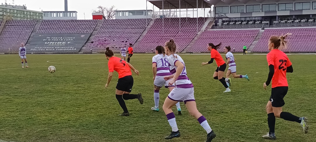 TIMISOARA. Politehnica Timisoara si Banat Girls Comlosu Mare s-au intalnit intr-o partida amicala dumninica dupa-amiaza pe stadionul Dan Paltinisanu, dupa ce alb-violetele au infruntat si o grupare cu potential de play-off, Csikszereda Miercurea Ciuc.