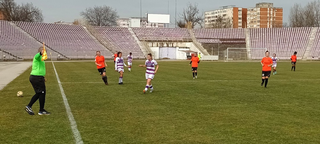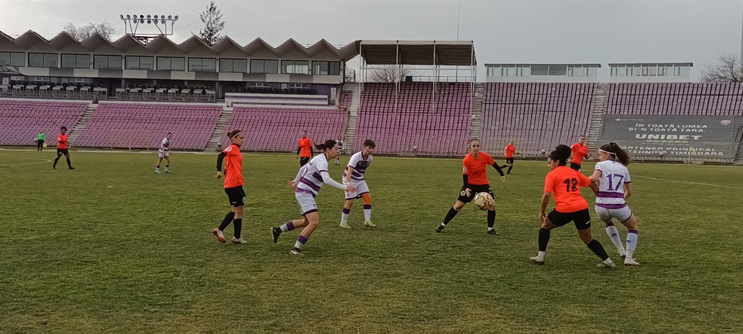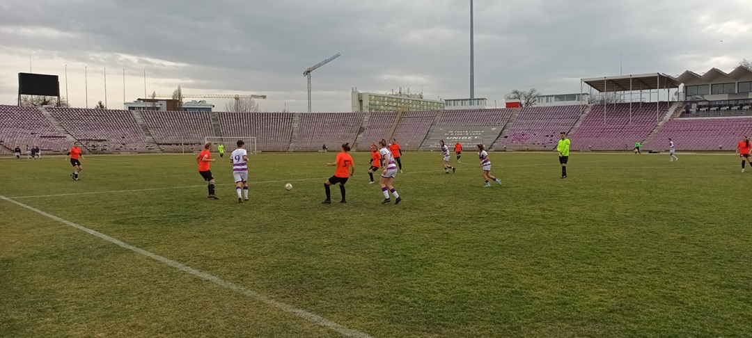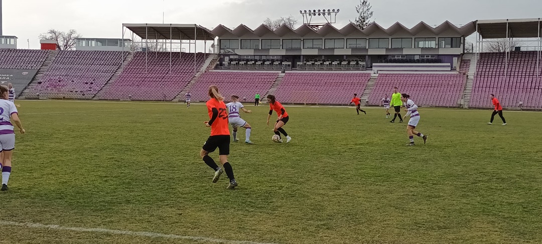 Fotbalistele pregatite de Mirel Albon au incheiat mai intai la egalitate duelul cu ardelencele, 2-2, dupa ce au fost conduse. Partida s-a disputat pe terenul sintetic al Bazei 2 Politehnica. Ciucul a deschis scorul dintr-o lovitura libera executata de Andreea Herczeg, cea care a stabilit si scorul pauzei.