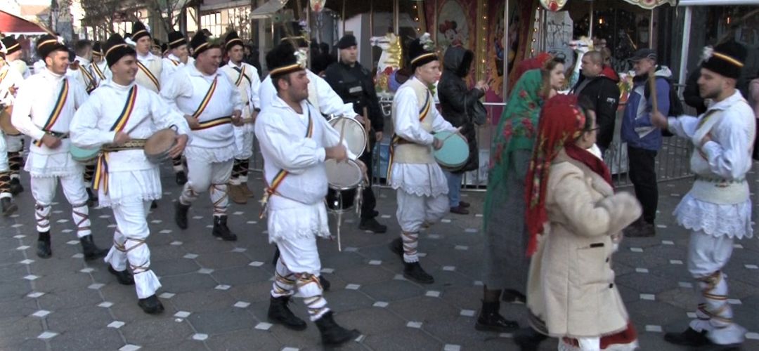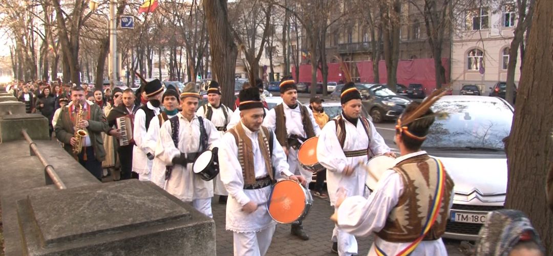 TIMISOARA. Capre, dubasi, bice, clopotei, tobe, talangi si nelipsitele colinde. A fost zarva mare la Timisoara. Sute de tineri din tot judetul au venit sa colinde la Timisoara.