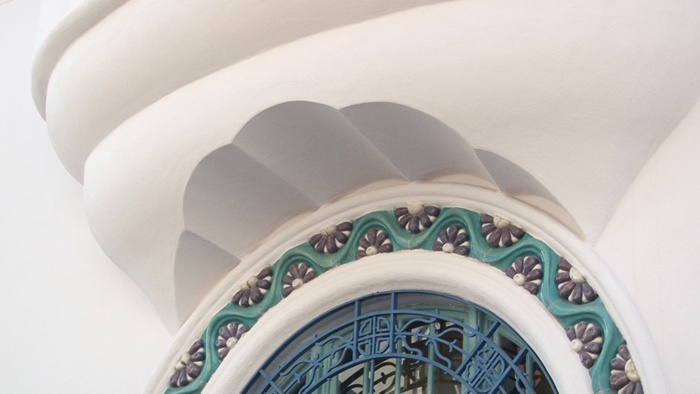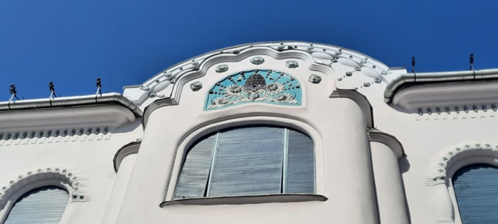 „Culoarea inițială trebuia să fie a hârtiei învechite, asta era intenția. Din cauză că s-au făcut mostre, nu s-a reușit acea culoare și erau culori mult prea intense, prea puternice. Culoarea e foarte importantă pentru că frumusețea clădirii este să lași formele curbe să iasă singure în evidență ca volumetrie și ornamentația clară de Secession târziu, adică floricele și inimioare. Astea sunt ornamentele de Secession târziu. Atunci îți trebuia o culoare calmă, liniștită să poți să scoți în evidență exact aceste elemente. Prin probe s-au încercat diverse variante. Nu ne-a plăcut acea culoare galbenă, omora toate ornamentele și am încercat să preluăm și să punem o culoare rece. Prin probe am obținut această culoare„, mai spunea Marcela Titz.