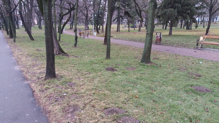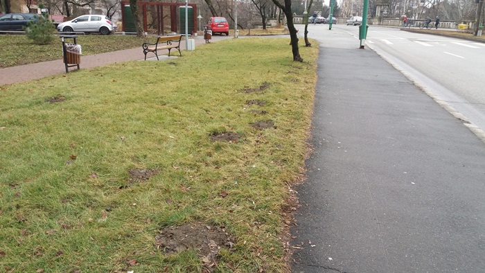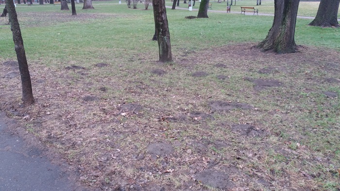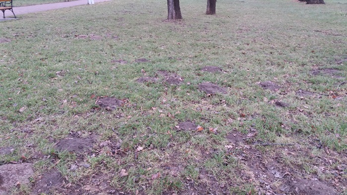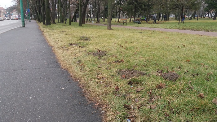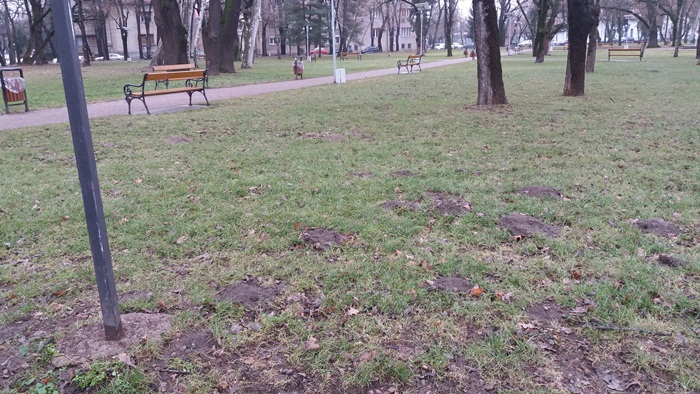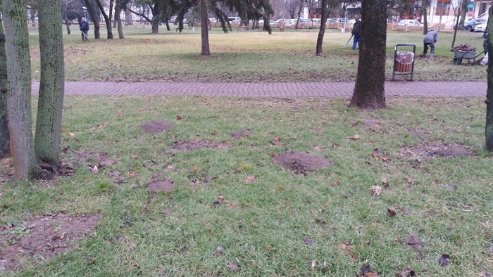 Dupa ce muncitorii primariei au inceput sa faca curatenie in Parcul Justitie si au strans frunzele de pe peluza englezeasca, au iesit la iveala si musuroaiele de cartita. Acestea sunt din nou in numar mare in partea de vest a parcului, catre strada 20 decembrie 1918, atat printre bulbii de lalele plantati de primarie, cat si printre copaci.