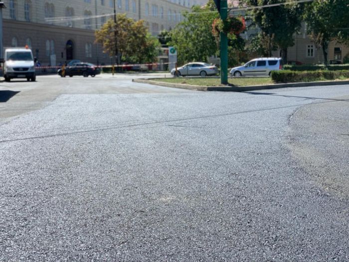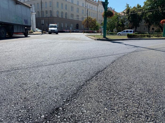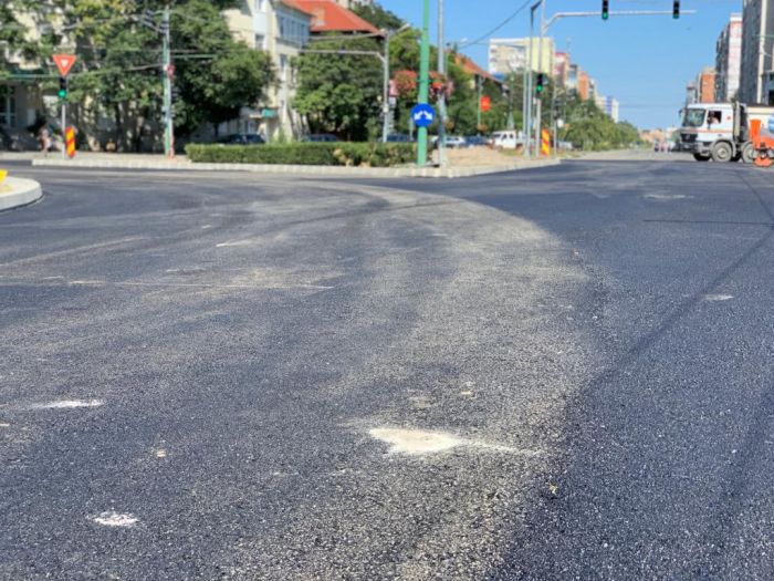 TIMISOARA. Muncitorii au dat zor si au finalizat asfaltarea pe strazile din zona intersectiei de la Punctele Cardinale. Este o prima etapa din cadrul lucrarilor ce au loc, in aceasta perioada, in zona centrala a orasului, menite sa fluidizeze traficul.