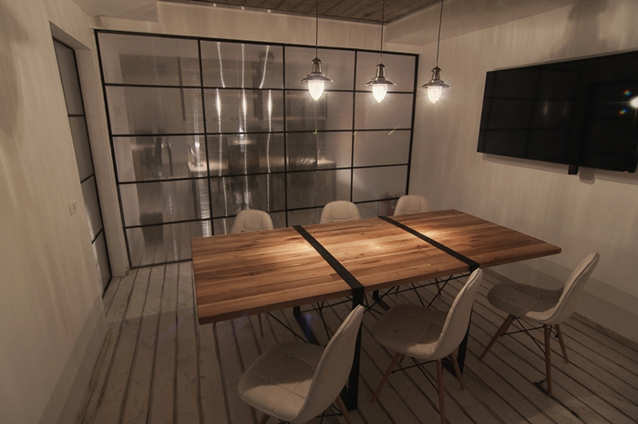 Sala de conferinte de pe acest nivel are aspectul unei sali retrase dar totusi comode si primitoare, asta in ciuda faptului ca pare sa fi fost amenajata intr-o fosta zona tehnica, industriala, solutie adoptata si pentru maximizarea spatiului disponibil.