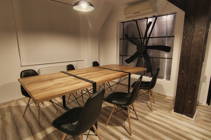 Open office-ul este spatiul birourilor din vechi paleti industriali si a salii de conferinte, a carei gazda este de fapt un mare ventilator industrial ce si-a schimbat functionalitatea si care aici are un rol decorativ. Nivelul superior este incadrat de ferestrele mari, indreptate spre nori ce permit o avalansa de lumina calda, tocmai de aceea spatiul este destinat celor care vor sa se relaxeze, sa socializeze sau chiar pentru sedinte.