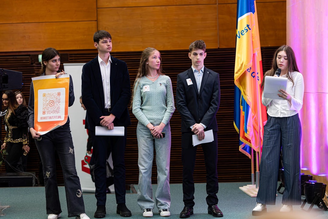 „Vă mărturisesc că sunt copleșită de emoții, pentru că mi-e foarte dragă această sală, Aula Magna UVT, cu atât mai mult cu cât o văd acum plină până la refuz. UVT este partenerul nostru de trei ani și a sprijinit cu perseverență acest proiect național. În 35 de ani de democrație am văzut multe lucruri, unele bune, altele mai puțin bune. Dar ceea ce face diferența, în acest peisaj, sunt oamenii și modul în care se implică în comunitate. Asta încercăm să facem la CONAF, o organizație care transformă ideile în proiecte viabile, care este capabilă să conecteze comunități, cu sprijinul partenerilor. Mergem prin România, într-un periplu, în 30 de județe, ne întâlnim cu sute de liceeni în fiecare județ, transformăm ideile în fapte reale. Vă mulțumesc vouă, mulțumesc CONAF Timiș, și din inimă vă spun, parte din sufletul meu este la UVT! Mulțumesc, Timișoara!”