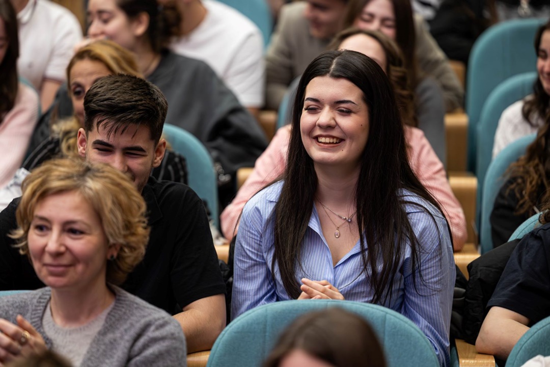 Prof.univ.dr. Flavia Barna, prorector UVT responsabil cu parteneriatele instituţionale, managementul proiectelor europene și antreprenoriat, s-a adresat publicului prezent în Aula Magna a UVT, plină până la refuz: