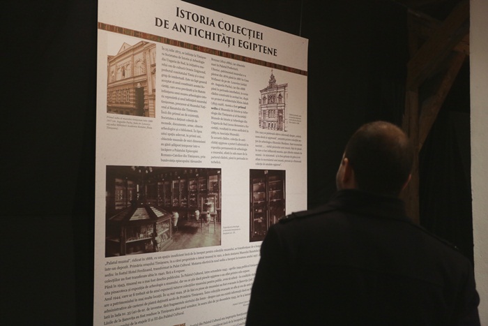 “Cea mai veche piesa nu este expusa pentru ca nu se poate muta. Este intr-o stare de conservare mai delicata. Este din anul 1300 inainte de Hristos, este o bucata dintr-un sicriu egiptean, dar o puteti vedea, pentru ca o avem pe un panou. O veti putea vedea pentru ca deja am luat legatura in strainatate sa o putem restaura, pentru ca in tara nu se face acest lucru. Au mai fost expuse aceste piese, dar nu toate. E prima data cand sunt expuse toate obiectele din colectia de piese egiptene” a declarat Claudiu Ilas, managerul Muzeului National al Banatului