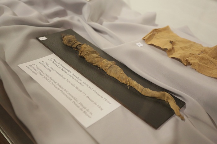 Printre piesele de rezistenta ale expozitiei se afla o bucata dintr-un picior uman mumificat, dar si un pui de crocodil mumificat.