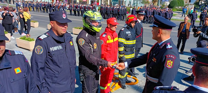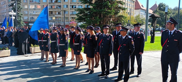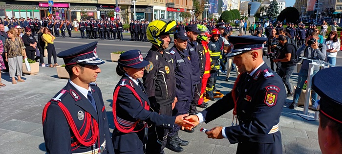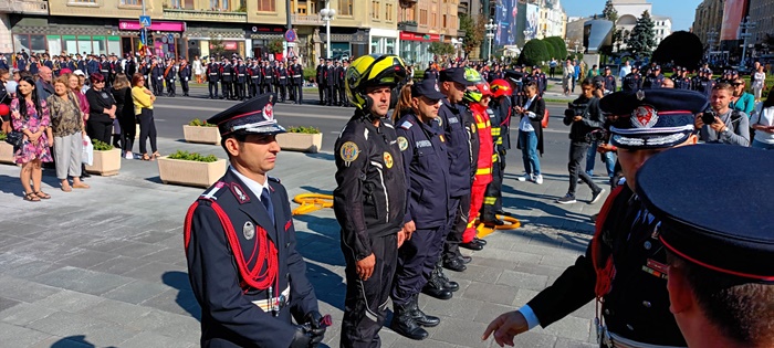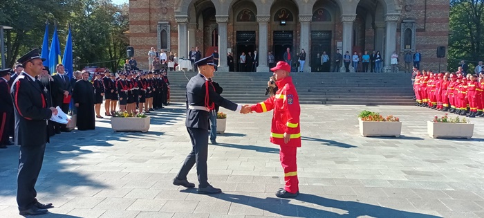 In cadrul ceremoniei sustinute in fata Catedralei, au fost inaintati in grad ofiteri si au primit diplome membri ai echipelor de voluntari din judet, dar si pompierii cu rezultate in diferite competitii sportive.