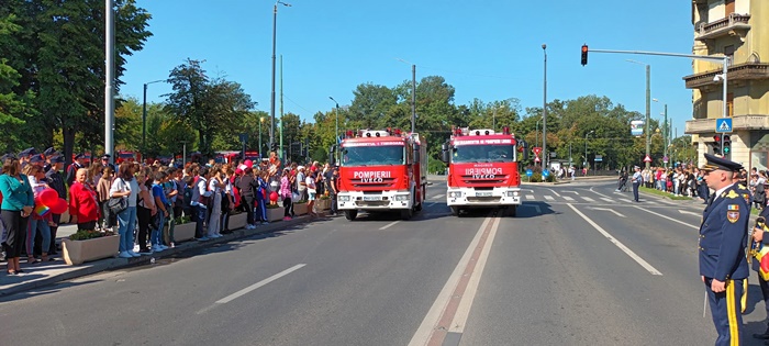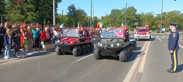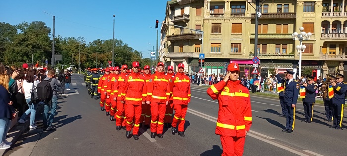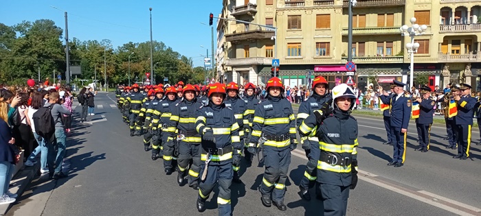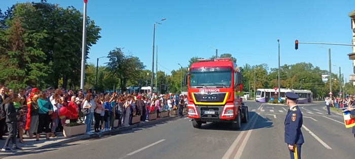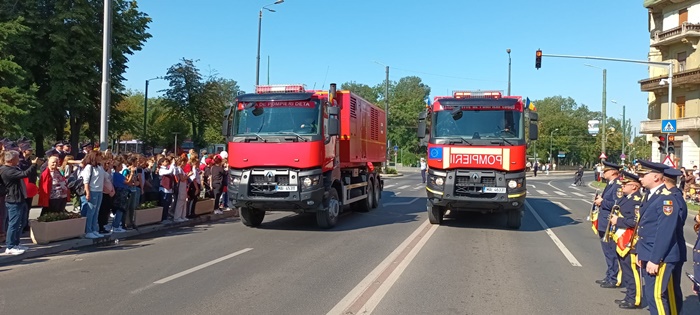 TIMISOARA. Defilare militara, prezentarea tehnicii de interventie si survolarea elicopterului SMURD. Asa a fost sarbatorita Ziua Pompierilor la Timisoara, dar si implinirea a 174 de ani de la batalia din Dealul Spirii.