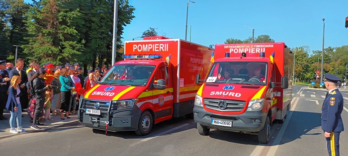 Parada a fost incheiata de elicopterul SMURD care a inconjurat de trei ori Catedrala Mitropolitana, iar echipajul a salutat de la inaltime multimea stransa la sarbatoarea pompierilor in centrul Timisoarei.