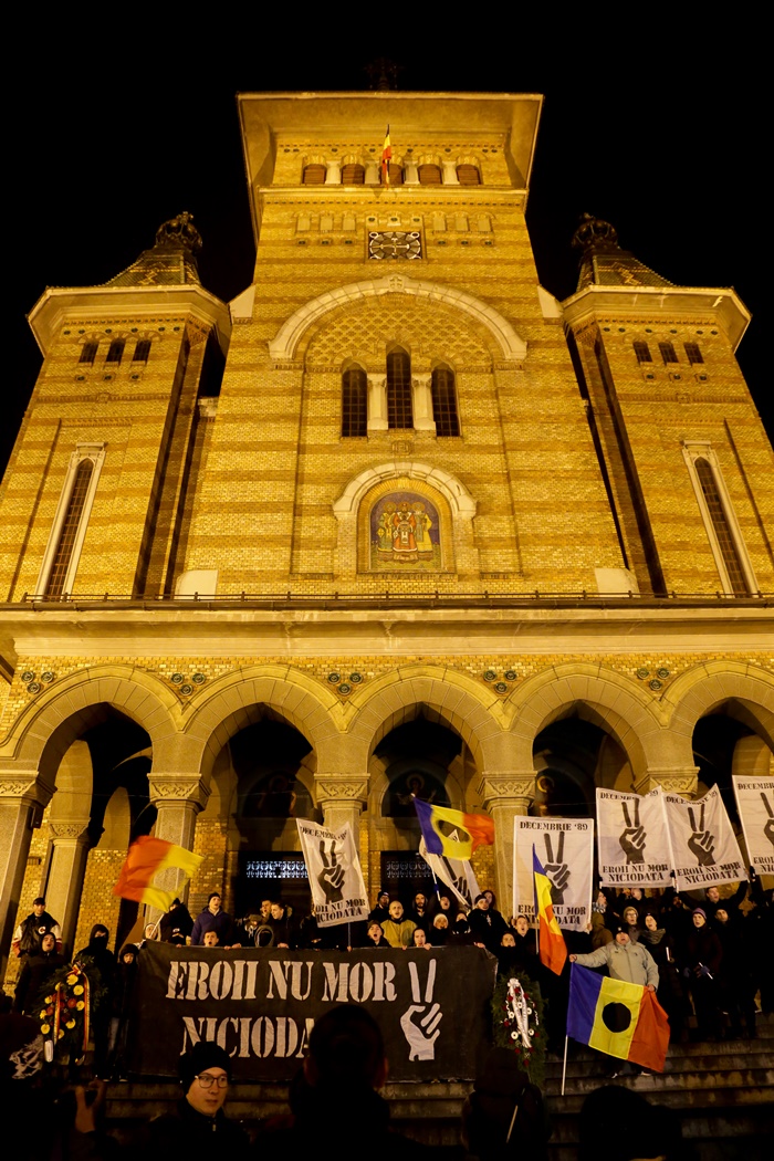 TIMISOARA. In urma cu exact 27 de ani, la Timisoara cadeau primii tineri secerati de gloante pe treptele Catedralei. Sacrificiul lor pentru libertate va ramane vesnic in amintirea Timisoarei care astazi, cernita, isi plange mortii.