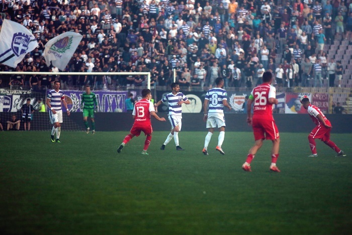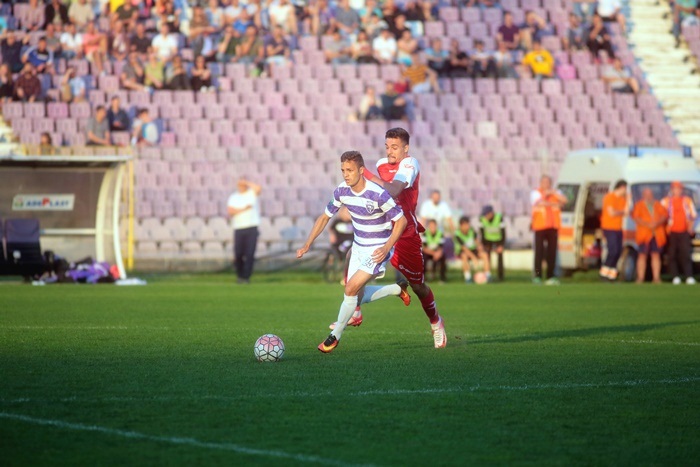Daca in tribune, fanii violeti au subordonat galeria „textilistilor”, care le-au oferit si onoarea sa vina in numar mare pe Bega, spre deosebire de „amabilitatea” aradenilor din meciul tur, pe teren, lucrurile au stat invesr. Chiar daca violetii au ratat primele ocazii ale partidei, UTA si-a aratat experienta superioara si chiar valoarea.