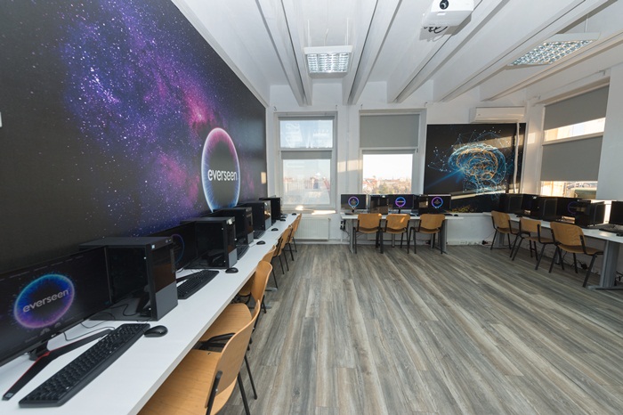 Investiția Everseen constă în renovarea completă a laboratorului, instalarea unui proiector și a 17 stații de lucru puternice – fiecare echipată cu procesor Intel i5, 32 GB RAM și carduri grafice Nvidia având capabilități pentru învățarea automată.