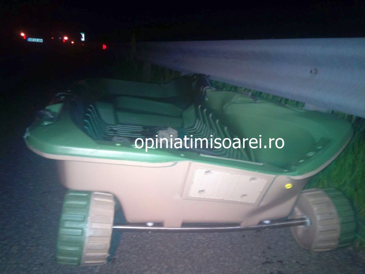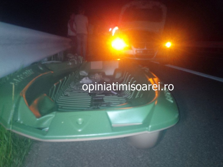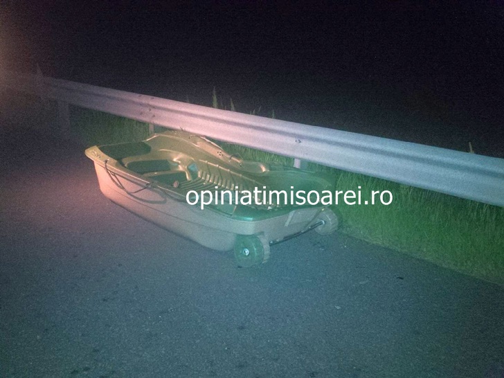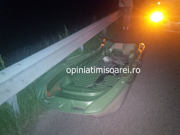 In jurul orei 22.00, un tanar venea la volanul unui BMW de la Arad catre Timisoara. Drumul era liber, insa soferul nu a calcat pedala de acceleratie. Cu doar cativa km inainte de a intra in judetul Timis, i-a aparut brusc in fata, pe prima banda de mers, o… BARCA.