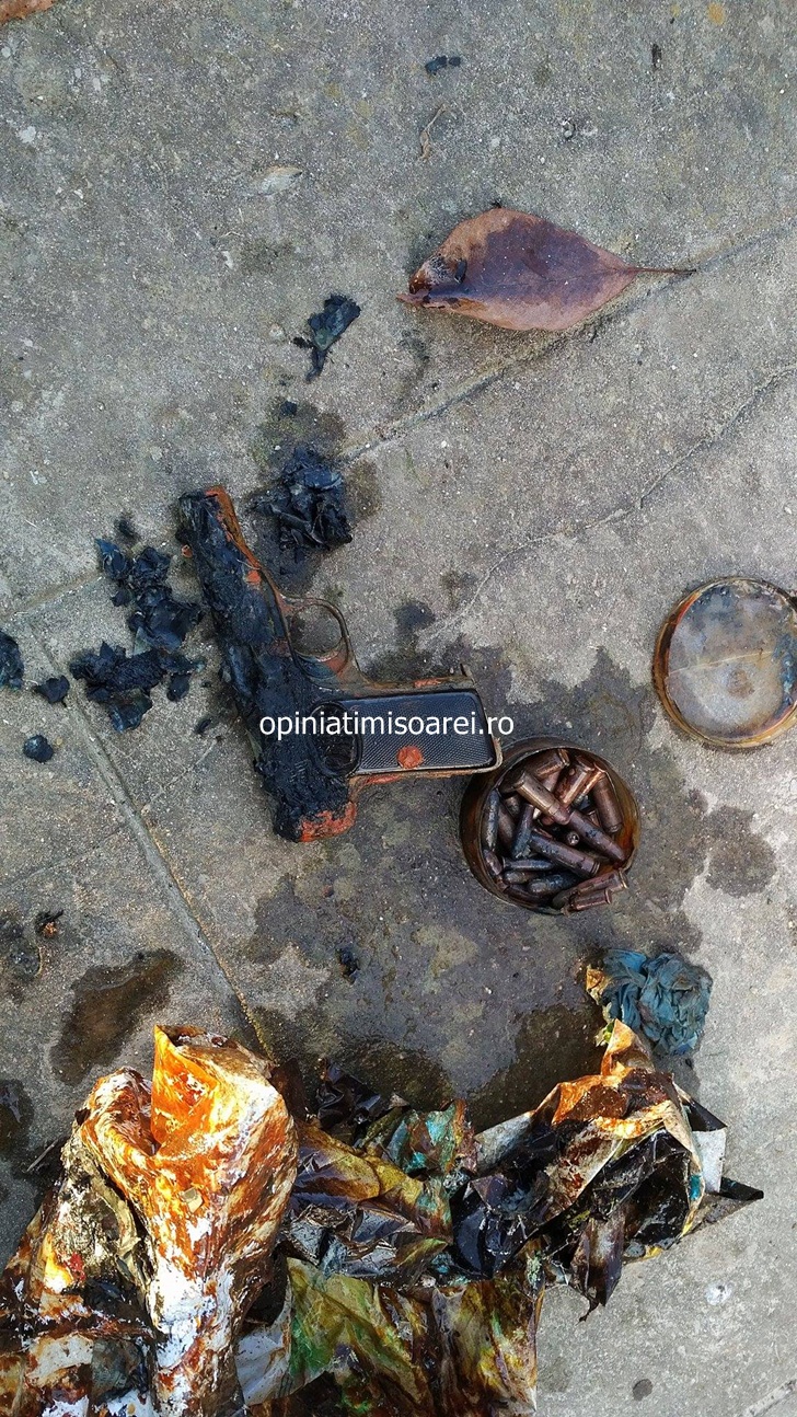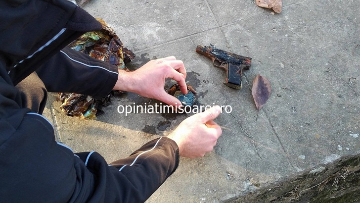 Acesta era pus intr-o punga impreuna cu cartusele. Din primele verificari, arma a fost arsa, astfel ca mai multe componente sunt topite. Cel care l-a aruncat in Bega a incercat sa distruga astfel seria pistolului si eventualele amprente.