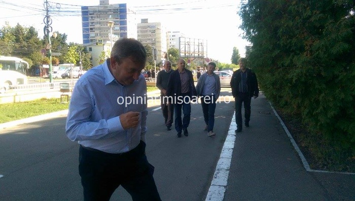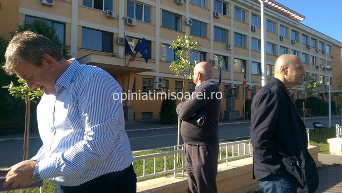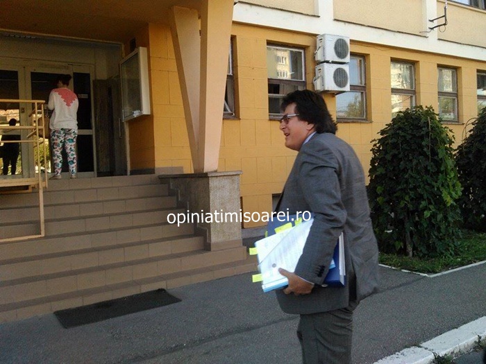 Primarul Timisoarei a ajuns in fata Inspectoratului Judetean de Politie Timis, unde isi are sediul SICE, la ora 9:02. Avea cu el cateva documente. A intarziat putin, asa ca s-a grabit sa intre in cladire.