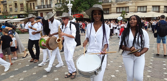 Si de data aceasta, sute de artisti au ajuns in centrul Timisoarei, acolo unde, intre Catedrala Mitropolitana si Opera, reprezentantii fiecarei tari si-au prezentat costumele, au dansat si au facut poze cu spectatorii.