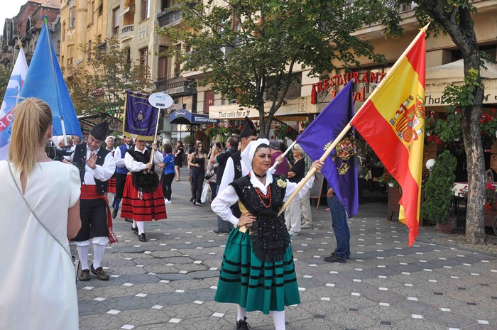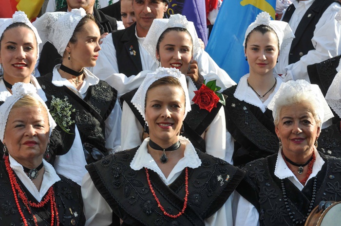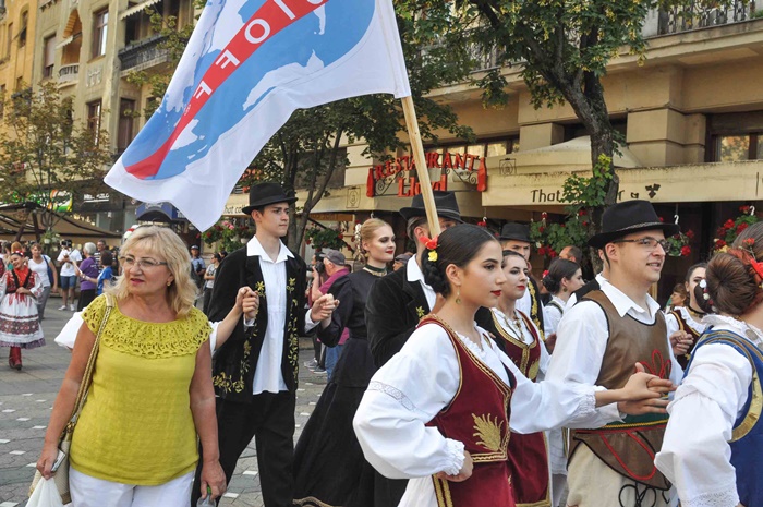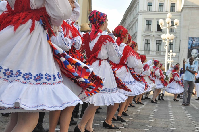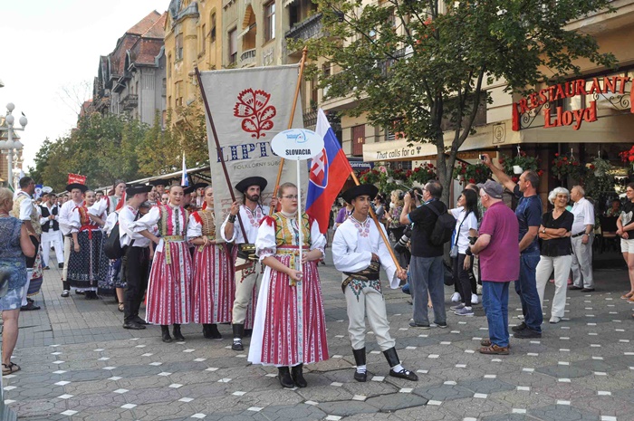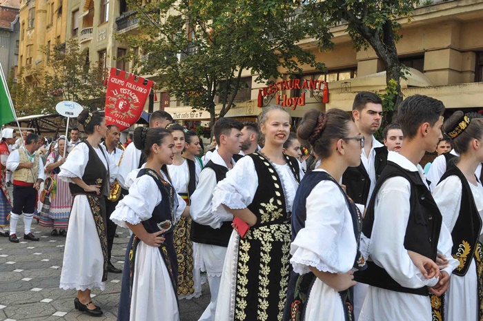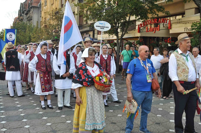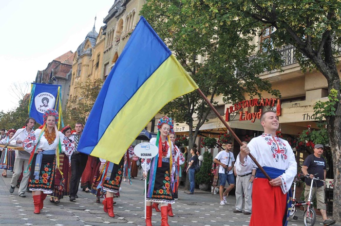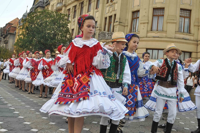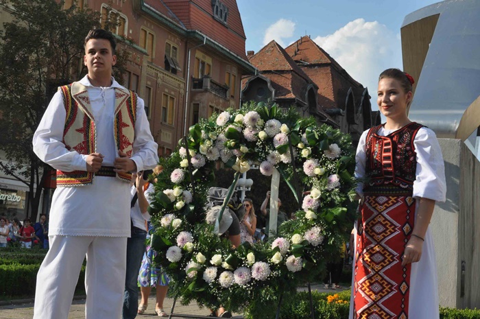 Ansambluri folclorice din Romania, dar si din strainatate au umplut centrul orasului de culoare si de ritmuri traditionale. Parada portului popular a inceput, asa cum se intampla an de an, din fata Catedralei Mitropolitane, unde s-a depus o coroana de flori in memoria eroilor Revolutiei din 1989.