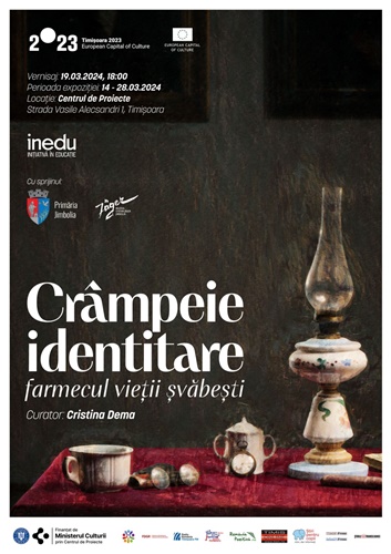 TIMISOARA. Asociația „Inițiativă în Educație” și Muzeul Stefan Jäger din Jimbolia organizează, în 19 martie 2024, vernisajul evenimentului „Crâmpeie identitare: farmecul vieții șvăbești”. Expoziția, care își dorește să readucă în prim-plan frânturi ale moștenirii lăsate de etnicii șvabi, va avea loc la Centrul de Proiecte Timișoara, începând cu ora 18:00.