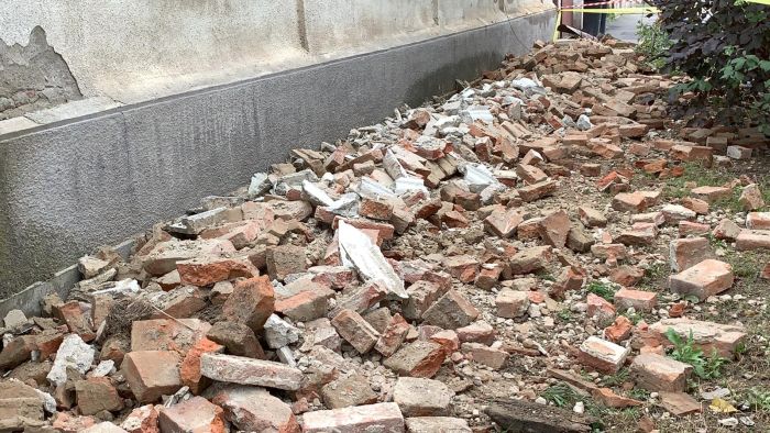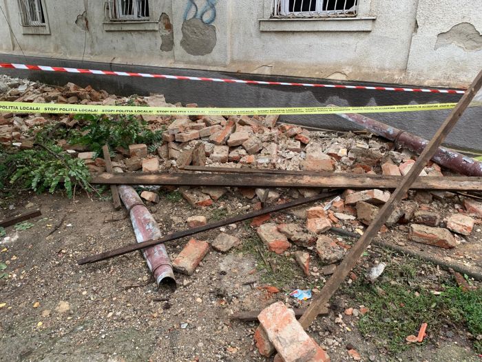 Din fericire, in momentul prabusirii nimeni nu trecea pe strada. Zona a fost imediat delimitata, pentru ca pietonii sa nu patrunda pe aici, iar pompierii au sosit imediat pentru a aduna bucatile de tencuiala si moloz.
