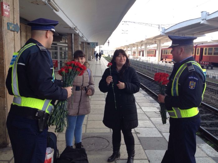 “Inspectoratul Judetean de Politie Timis ureaza tuturor femeilor o primavara minunata si La Multi Ani de Ziua Femeii! Pentru a continua traditia si pentru a arata femeilor ca sunt speciale, politistii din cadrul Serviciului Rutier si cei din cadrul Sectiei Regionale de Politie Transporturi Timisoara le-au oferit flori participantelor la trafic si calatoarelor intalnite pe peronul Garii de Nord din Timisoara sau in trenuri”, transmit reprezentantii IPJ Timis.