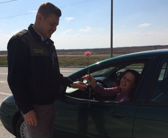 Si agentii din cadrul Politiei de Frontiera le-au facut o bucurie femeilor care intrau sau ieseau din tara. Dupa ce au prezentat documentele de calatorie, doamnele si domnisoarele le-au primit inapoi alaturi de garoafe si cele mai calduroase urari adresate de politistii de Frontiera din Timis, Caras-Severin si Mehedinti.