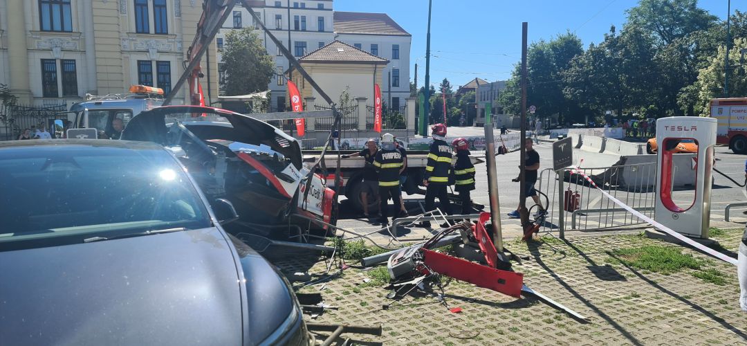 “În data de 09 august a.c., în timpul unei competiții de raliu, un pilot în vârstă de 22 de ani, a ieșit cu autovehiculul pe care îl conducea în afara pistei de raliu de pe Bulevardul I.C. Brătianu, intrând în coliziune cu un autoturism parcat.