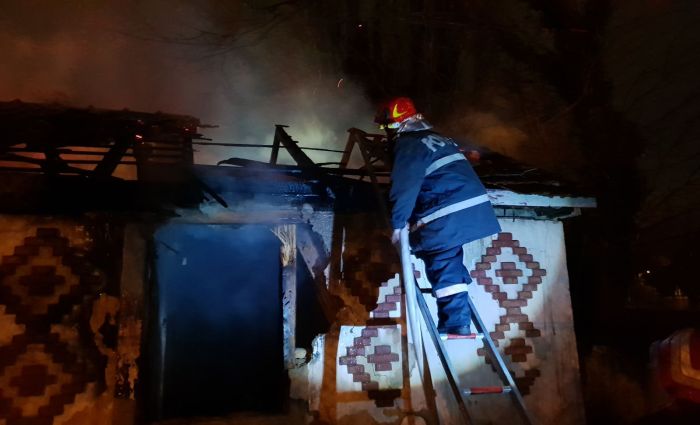 Flacarile s-au extins cu repeziciune la acoperis, pe care l-au mistuit complet.