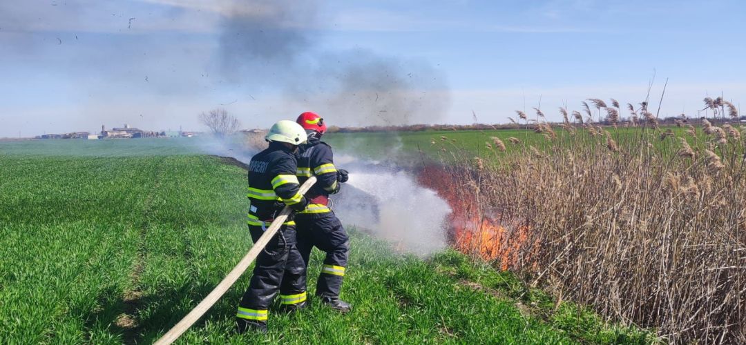 TIMISOARA. Alarma la ISU Timis, duminica dupa-amiaza. Pompierii au intervenit rapid pentru a opri un incendiu de vegetatie uscata si stufaris care mistuia totul in calea sa pe 6 hectare de teren, la Dudestii Vechi.
