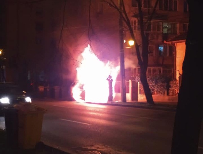 Autoturismul era parcat pe marginea strazii Surorile Martir Caceu din Timisoara, in zona de case. Proprietarul a ajuns langa masina, insa nu a putut face nimic si a sunat pompierii.