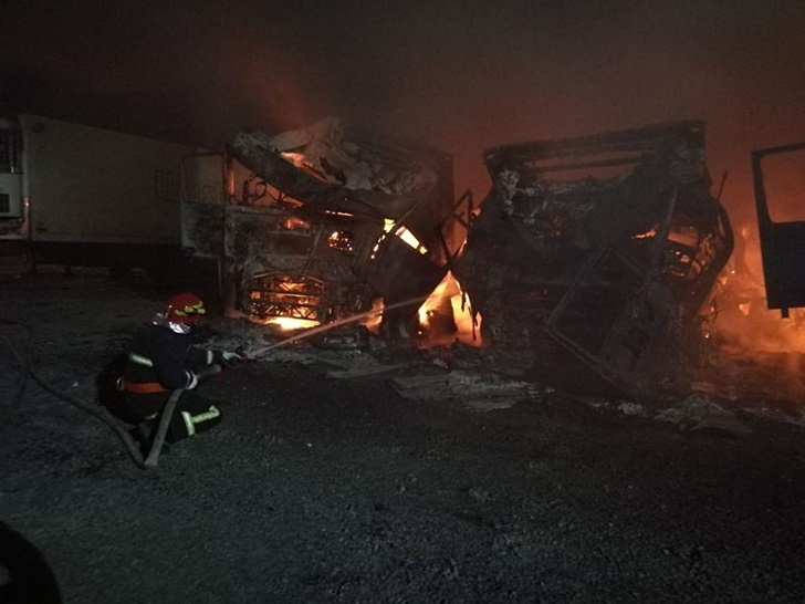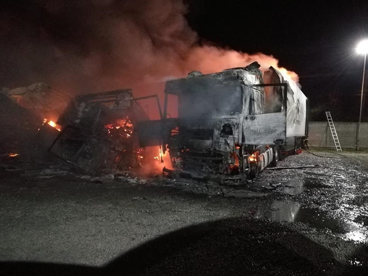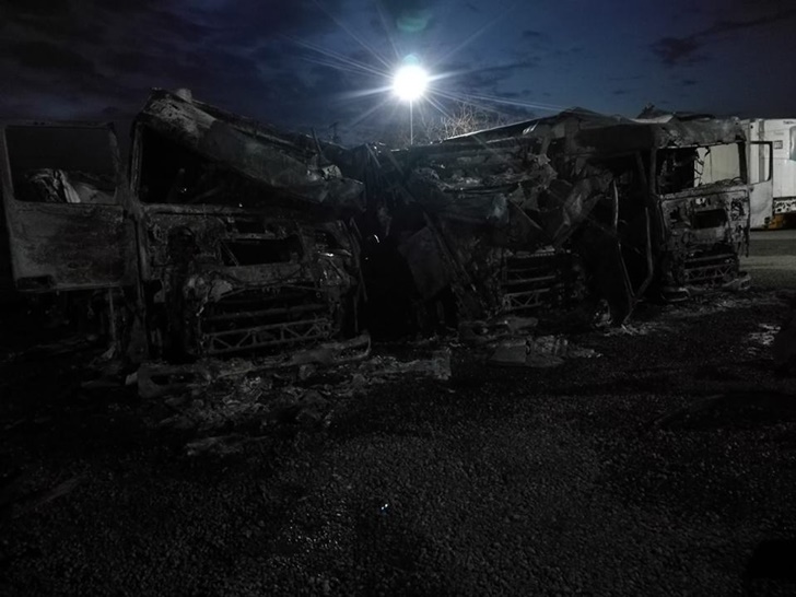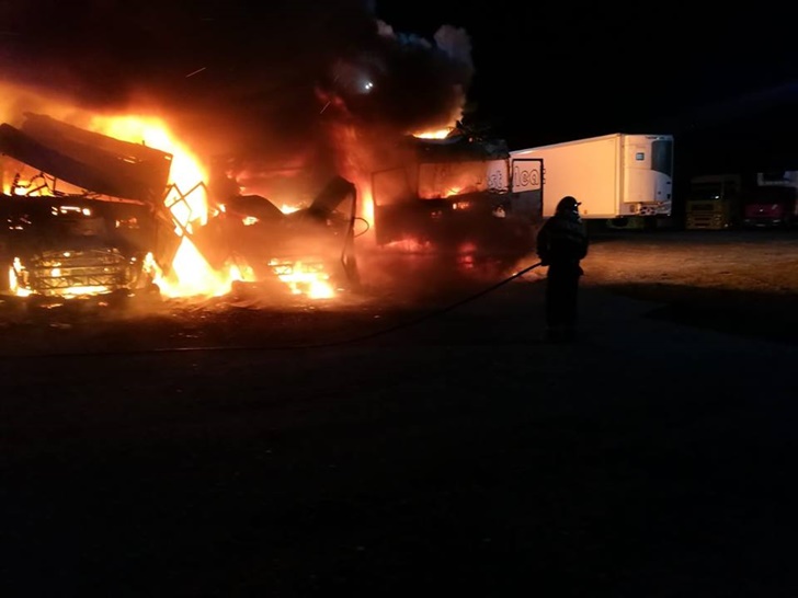 ‘Au fost deplasate 2 autospeciale de stingere cu apa si spuma si 8 pompieri. La momentul sosirii ardeau generalizat, violent, 3 camioane, toate parcate unul lângă celalalt la mica distanta și cu posibilitate de propagare la alte camioane. S-a actionat pentru stingere aproximativ o ora. Amploarea incendiului a fost favorizata de anuntul tarziu al acestuia. Parcarea nu beneficia de paza sau camere de supraveghere’, au transmis reprezentantii ISU Arad.