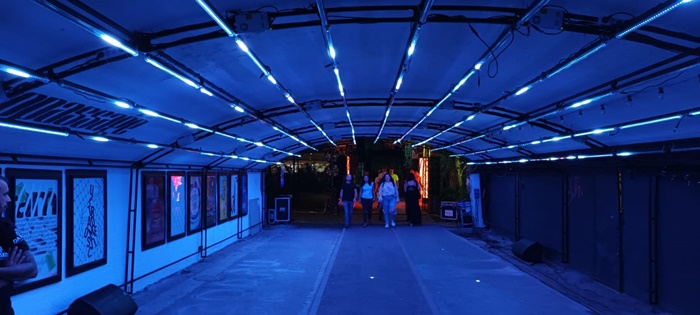 De asemenea, pe aleea pietonala de sub pod a fost montata o alta instalatie de lumini.
