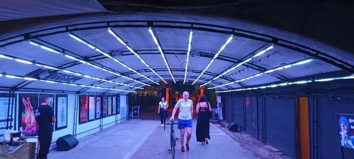 “Avem doua tuneluri imersive, unul facut din ecrane led puse la unghi, in asa fel incat sa dea o experienta inedita publicului, al doilea facut din structura metalica de 13 metri, cu niste leduri speciale care lumineaza si ne indeamna sa ne apropiem sa trecem pe sub ele. Un spectacol absolut fenomenal de lasere cu litere volumetrice bidimensionale acoperite de masina de fum, iar in final am luminat, de pe un mal pe celalalt, podul de pe Bega. Ideea ne-a venit dupa acesti 4 ani de experienta in care ne-am dat seama ca arta trebuie imbinata cu tehnologia, pentru ca este un trend, se merge din ce in ce mai mult pe asta si arata foarte bine. Si, cum Timisoara este orasul celor 1000 de premiere, in aceasta seara este o noua premiera si pentru Timisoara“, a declarat pentru opiniatimisoarei.ro, Vlad Garboni, co-founder Flight Festival.