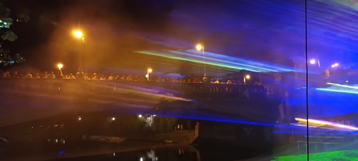 Imediat dupa concert, au pornit echipamentele si, pe ritm de muzica, a inceput jocul de lumini si lasere, care a durat aproape un sfert de ora si s-a incheiat cu iluminarea Podului Andrei Saguna.