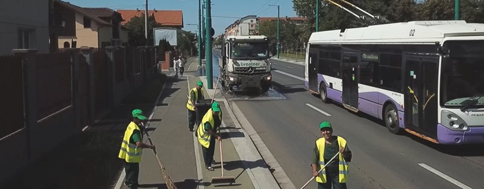 “Nu aflam pe strada Maresal Constantin Prezan, unde desfasuram urmatoarele operatiuni: maturat manual, intretinere, maturat mecanizat si spalat mecanizat. La aceste operatiuni am folosit muncitori necalificati, maturi de capacitate mare si cisterne, tot ce este nevoie pentru a intretine Timisoara si a deveni mai curata“, spune Calin Iancu, dispecer operatiuni salubrizare Brantner.