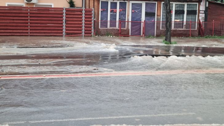 Echipe de jandarmi si politie au restrictionat traficul si au sosit echipele de interventie ale Aquatim.