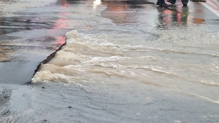 Presiunea a fost atat de puternica incat pe o portiune insemnata asfaltul a fost pur si simplu smuls, iar apa a navalit pe sensul catre Giroc, iar mai apoi si pe celalalt.