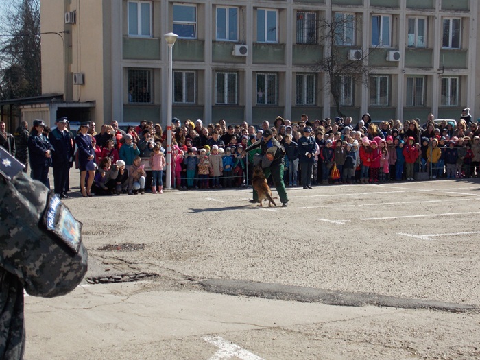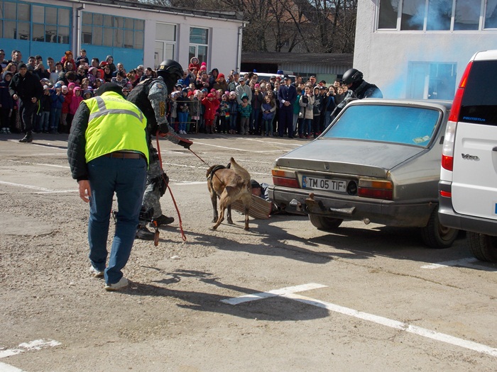 Tot spre incantarea celor mici s-a facut si o demonstratie de prindere a infractorului cu ajutorul cainilor. Salturile patrupedelor si viteza de reactie au smuls chiote si ropote de aplauze.