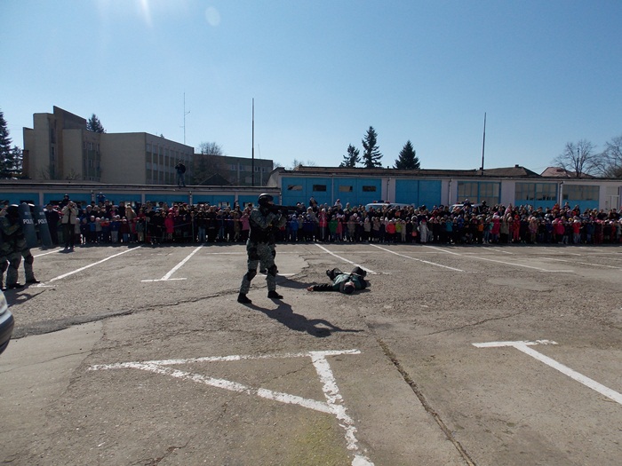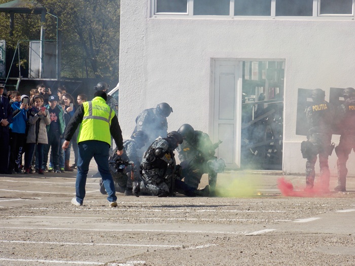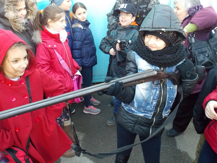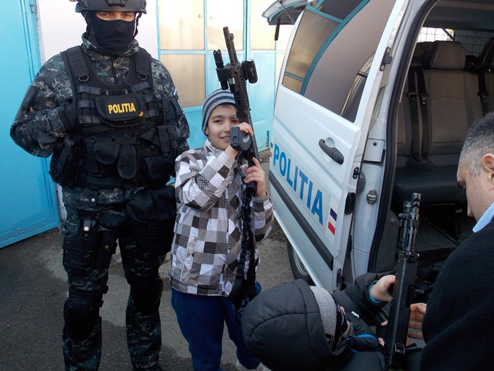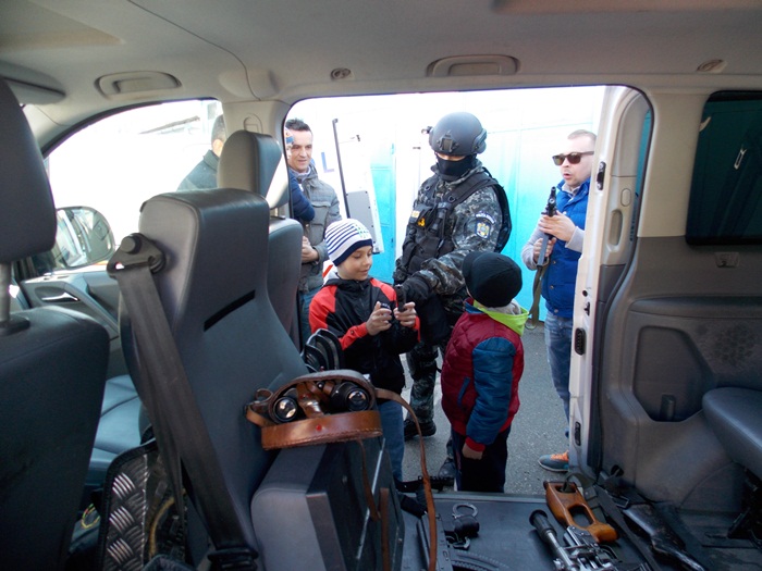 Dupa exercitiu, cei mici au putut vedea armele pe care le folosesc politistii si au fost foarte incantati de pusca cu luneta, dar si de armele automate. Cei mai mici dintre ei au urcat si in masini sau pe motocicleta.