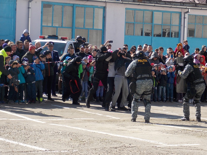 Punctul culminant a fost insa exercitiul de prindere in flagrant al unor infractori cu ajutorul trupelor speciale de interventie rapida.