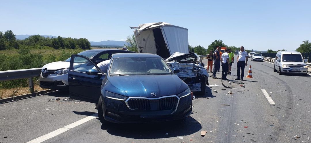 “În urma verificărilor efectuate la fața locului, cu privire la evenimentul rutier produs pe Autostrada A1, s-a stabilit faptul că accidentul rutier ar fi avut loc în urma coliziunii față – spate, dintre 5 autoturisme, o autoutilitară și un tir.