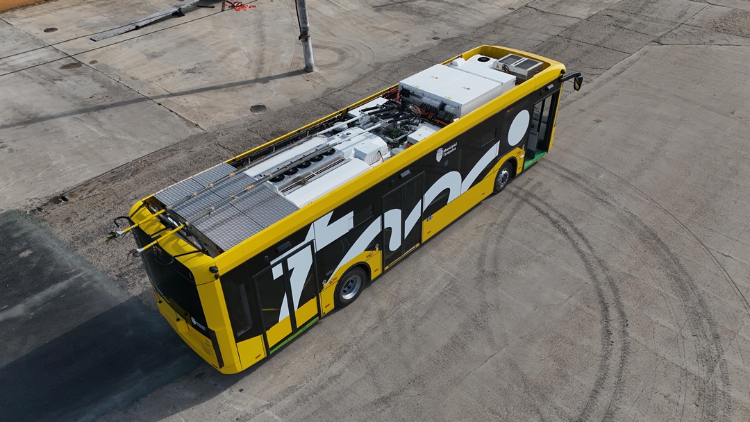 Este primul troleibuz dintr-un lot de 33, pe care fabrica din Turcia le produce pentru Timișoara, mijloace de transport cumpărate cu bani europeni, prin PNRR.