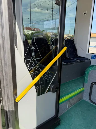 Firobuzul este personalizat. Geamurile de protectie interioare au fost decorate cu o grafica reprezentand una dintre cladirile simbol ale orasului, Catedrala Mitropolitana.