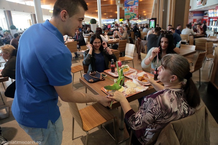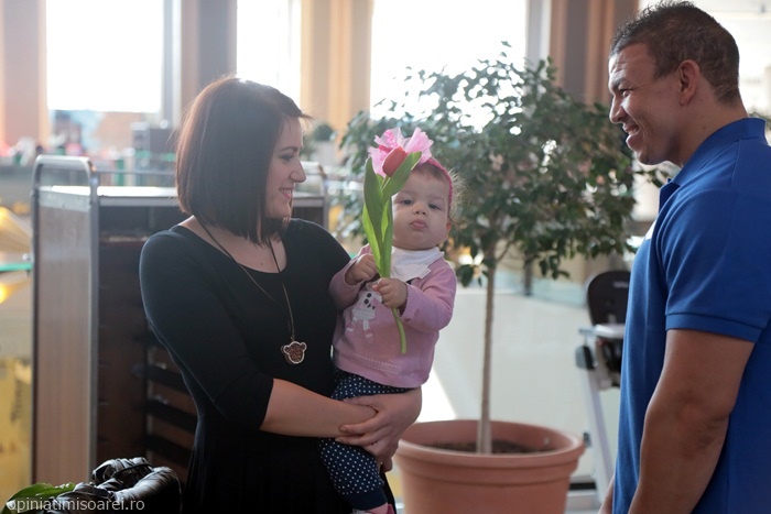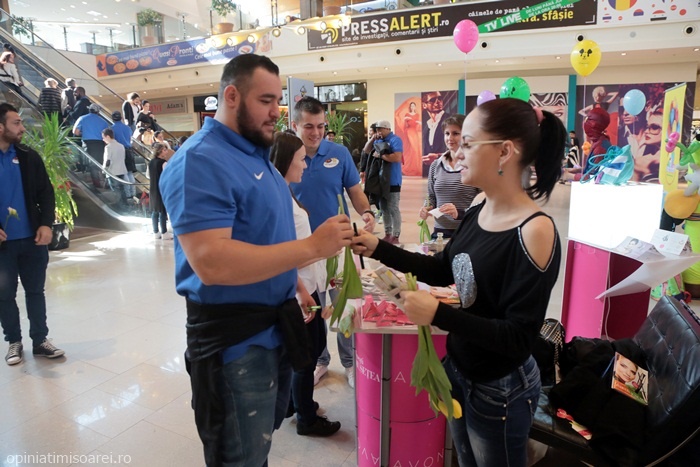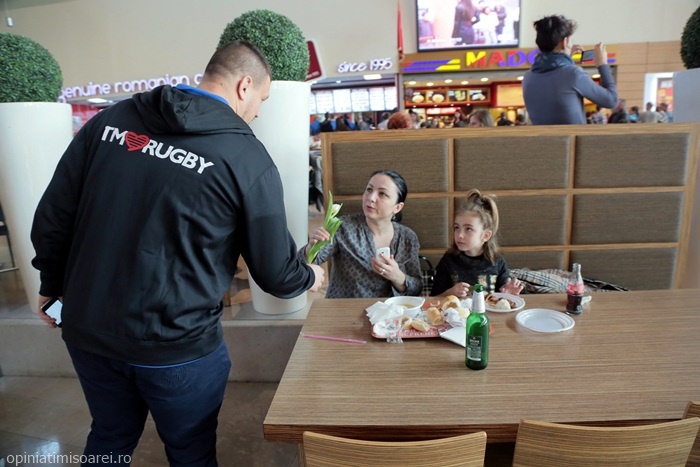 Pe langa martisoarele care s-au dat in spatele camerelor de luat vederi si a aparatelor foto, iata ca acum multiplii medaliati la rugby au facut o plimbare prin mall, pentru a sarbatori… FEMEIA. Ocazie cu care au oferit sute de flori doamnelor si domnisoarelor aflate la cumpataruri sau la un suc ori la o cafea.