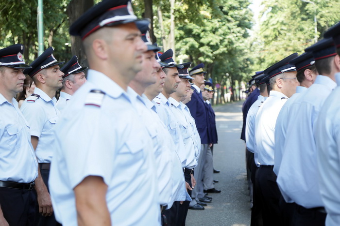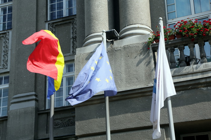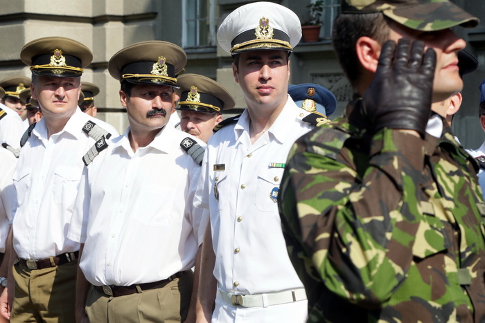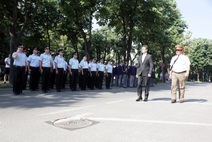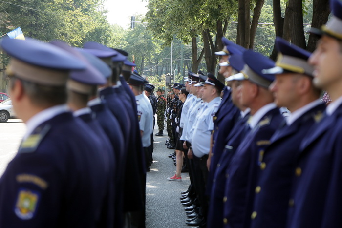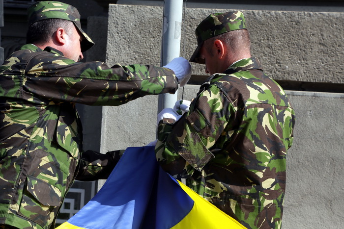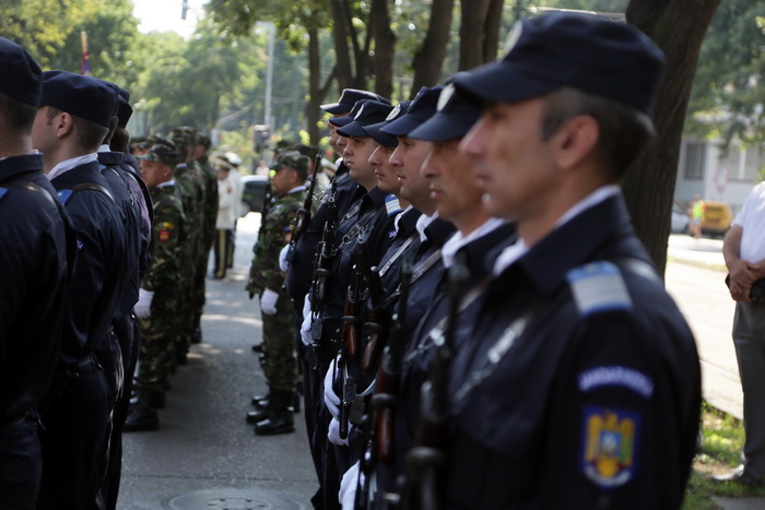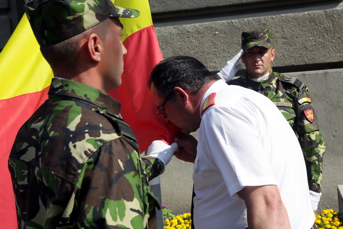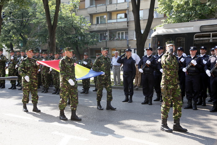 TIMISOARA. Militari, jandarmi si pompieri de la Inspectoratul pentru Situatii de Urgenta “Banat” au defilat in fata Palatului Administrativ din Timisoara, pentru a marca Ziua Drapelului.