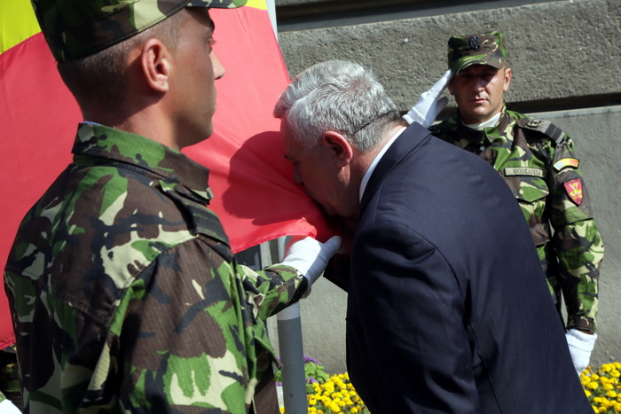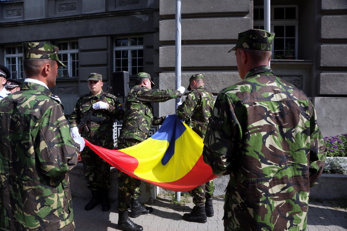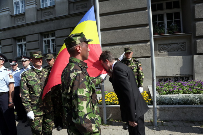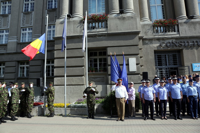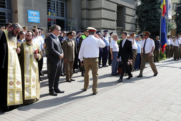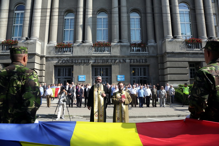La eveniment au participat oficialitatile din Timisoara si din jduet. Cu totii au dat onorul Tricolorului si au salutat drapelul de lupta si detasamentul de onoare. A urmat apoi inaltarea Drapelului Romaniei, intonarea de cantece patriotice si defilarea detasamentului de onoare.