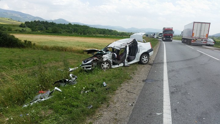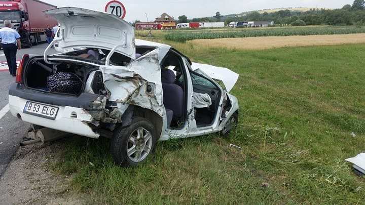 Soferul unei masini marca Dacia Logan in care se mai aflau alti trei pasageri, a intrat in depasirea unui TIR. In timp ce se afla in depasire, in fata sa a aparut un alt TIR care circula regulamentar. Soferul acestuia nu a avut cum sa evite impactul, astfel ca a lovit in plin Loganul.