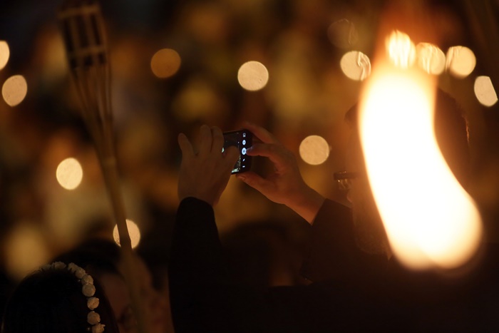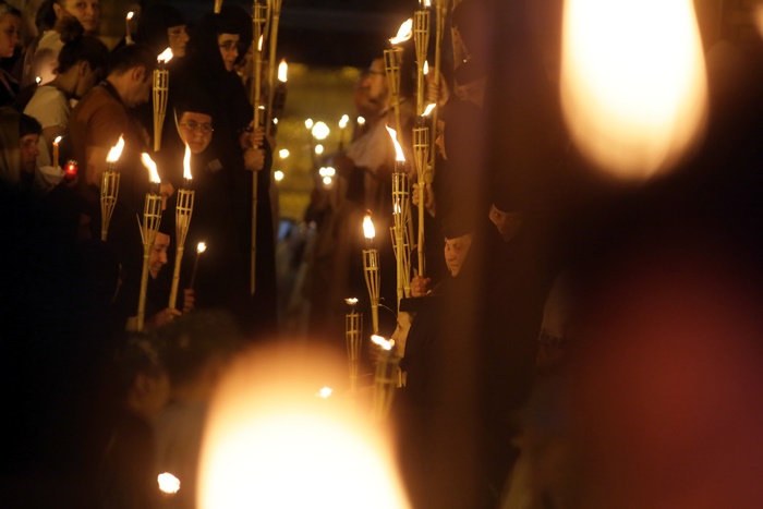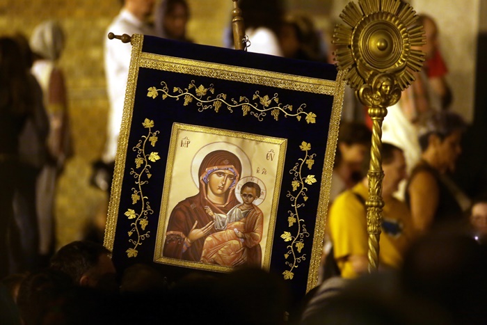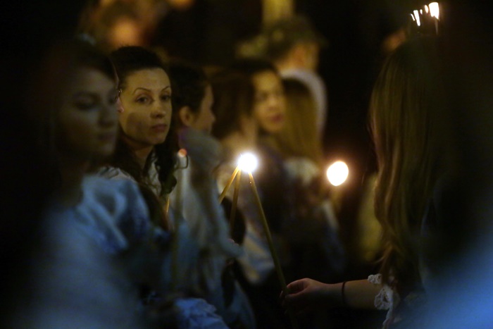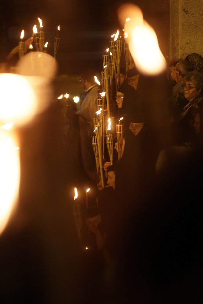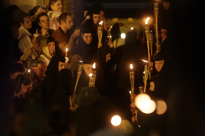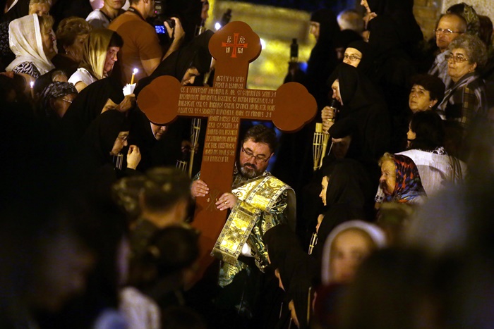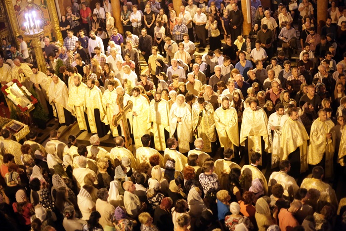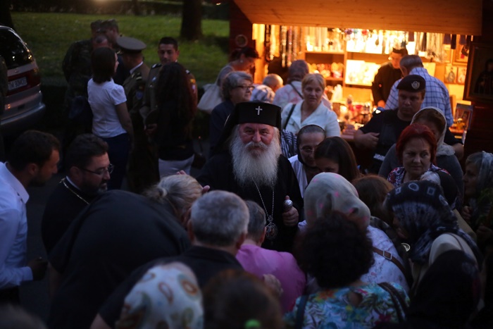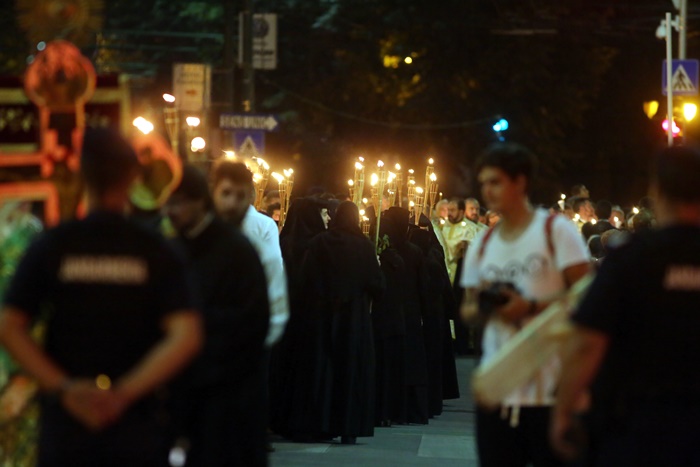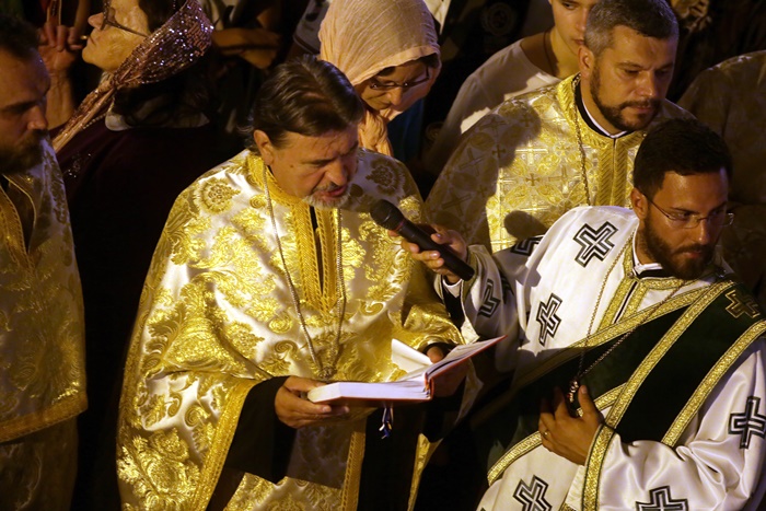Imediat dupa slujba de vecernie, Mitropolitul Banatului, Ioan Selejan, a coborat pe platoul din fata Catedralei si i-a binecuvantat pe credinciosii veniti la procesiune. Preotii si enoriasii au pornit apoi, cu racla in care se afla moastele Sfantului Iosif cel Nou de la Partos, in jurul Catedralei.